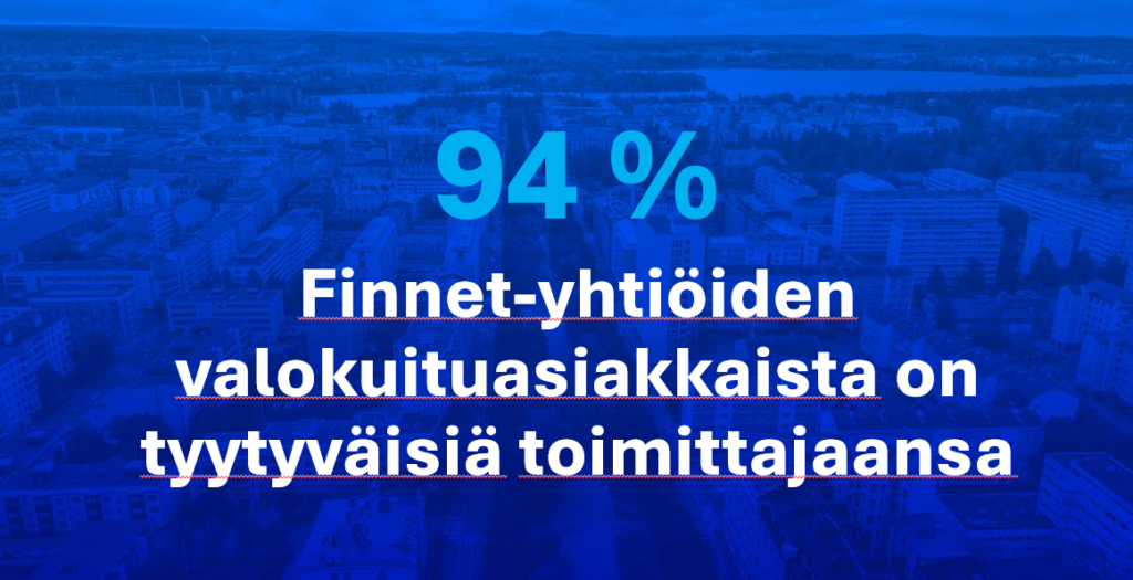94 % Finnet-liiton paikallisyhtiöiden valokuituasiakkaista on tyytyväisiä kotinsa internetyhteyteen. Tämä käy ilmi Finnet-liiton syksyllä 2025 teettämästä tutkimuksesta, johon vastasi yli 4000 asunnonomistajaa.